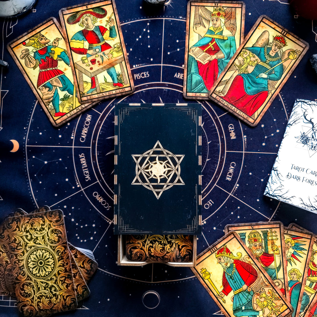 Step into Europe’s oldest tarot tradition. The Tarot de Marseille—standardised in France between the 17th and 18th centuries by master printers—shaped the visual language of tarot long before modern decks. Our edition honours that heritage with vintage-inspired artwork and professional production for years of reliable readings.